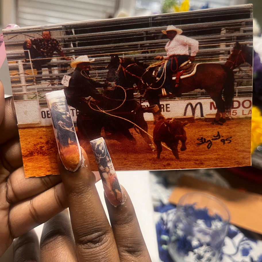 Get ready to take your nail game to the next level with our Custom Picture Nail Decals! Whether you want to show off your pet’s adorable face, your favorite vacation spot, or a memorable moment, our custom nail decals are the perfect way to personalize your nails. Simply choose the image you want, and your nail tech can easily apply it to give you a stunning and unique manicure. These decals are made with high-quality materials and are easy to apply and remove, making them a must-have for anyone who loves to express their individual style through their nails. Say goodbye to boring nail art and hello to personalized, eye-catching designs with our Custom Picture Nail Decals!