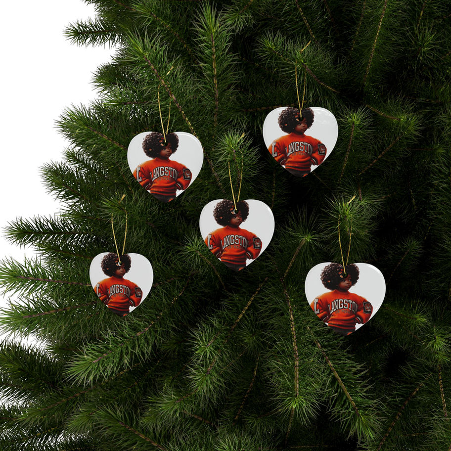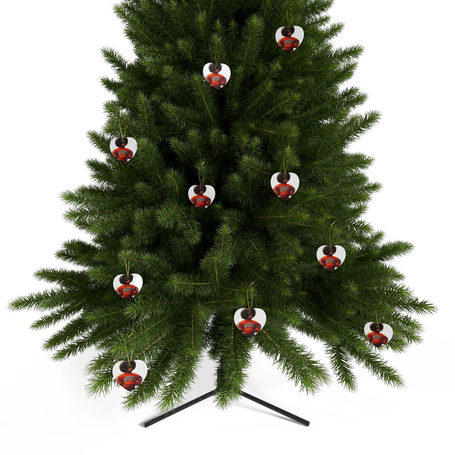 .: Material: Ceramic .: Glossy finish .: Five shapes to choose from .: Same design printed front and back .: Includes gold string for hanging